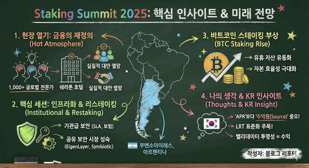 안녕하세요! 오늘은 암호화폐 스테이킹 산업의 가장 뜨거운 현장, 아르헨티나 부에노스아이레스에서 개최된 Staking Summit 2025의 생생한 소식을 전해드리려고 합니다.